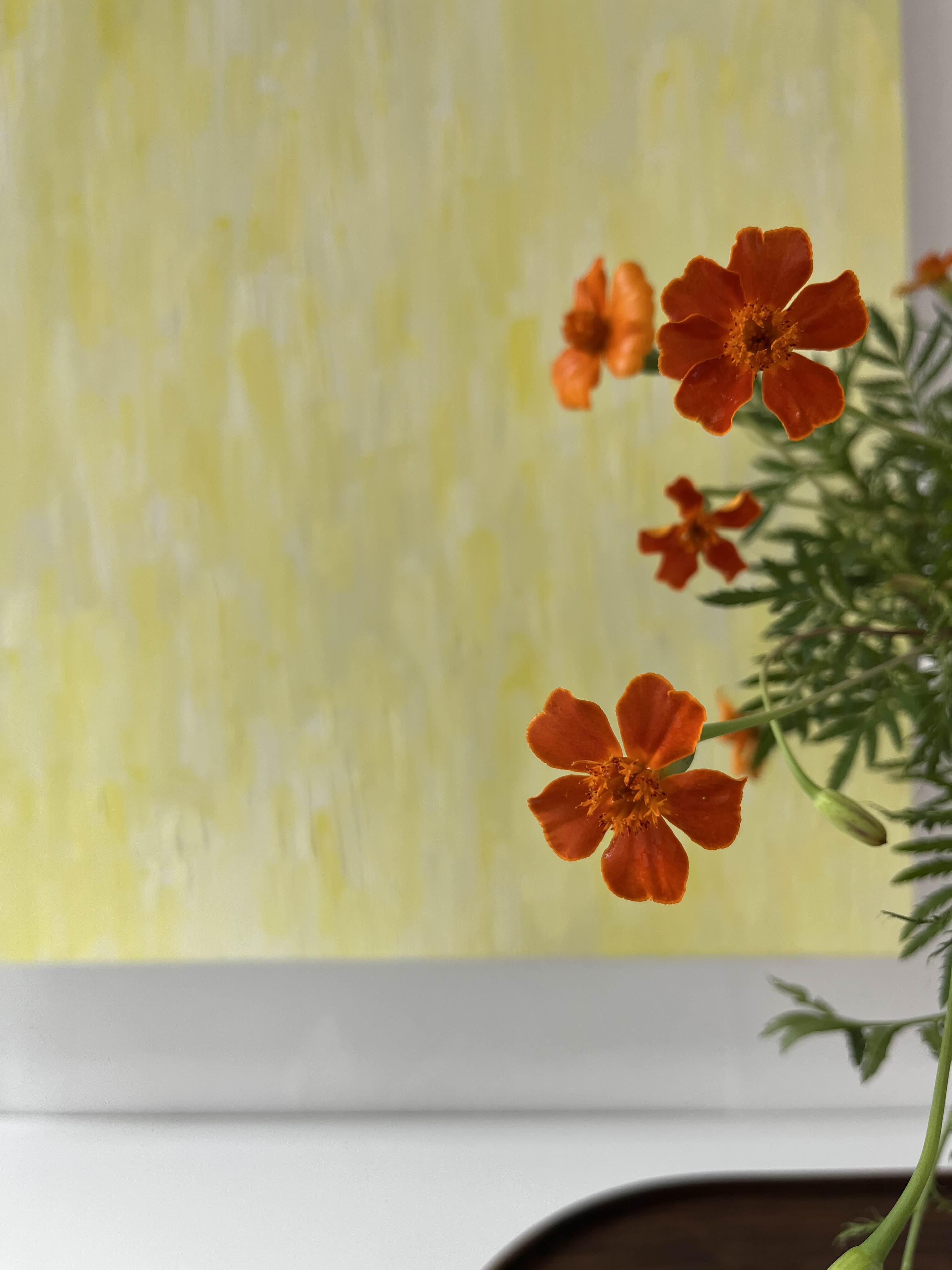 작년에 마당에 풍성하게 피어난 메리골드를 절화해서 저희 화기에 꽂아두며 한 동안 감상했어요.