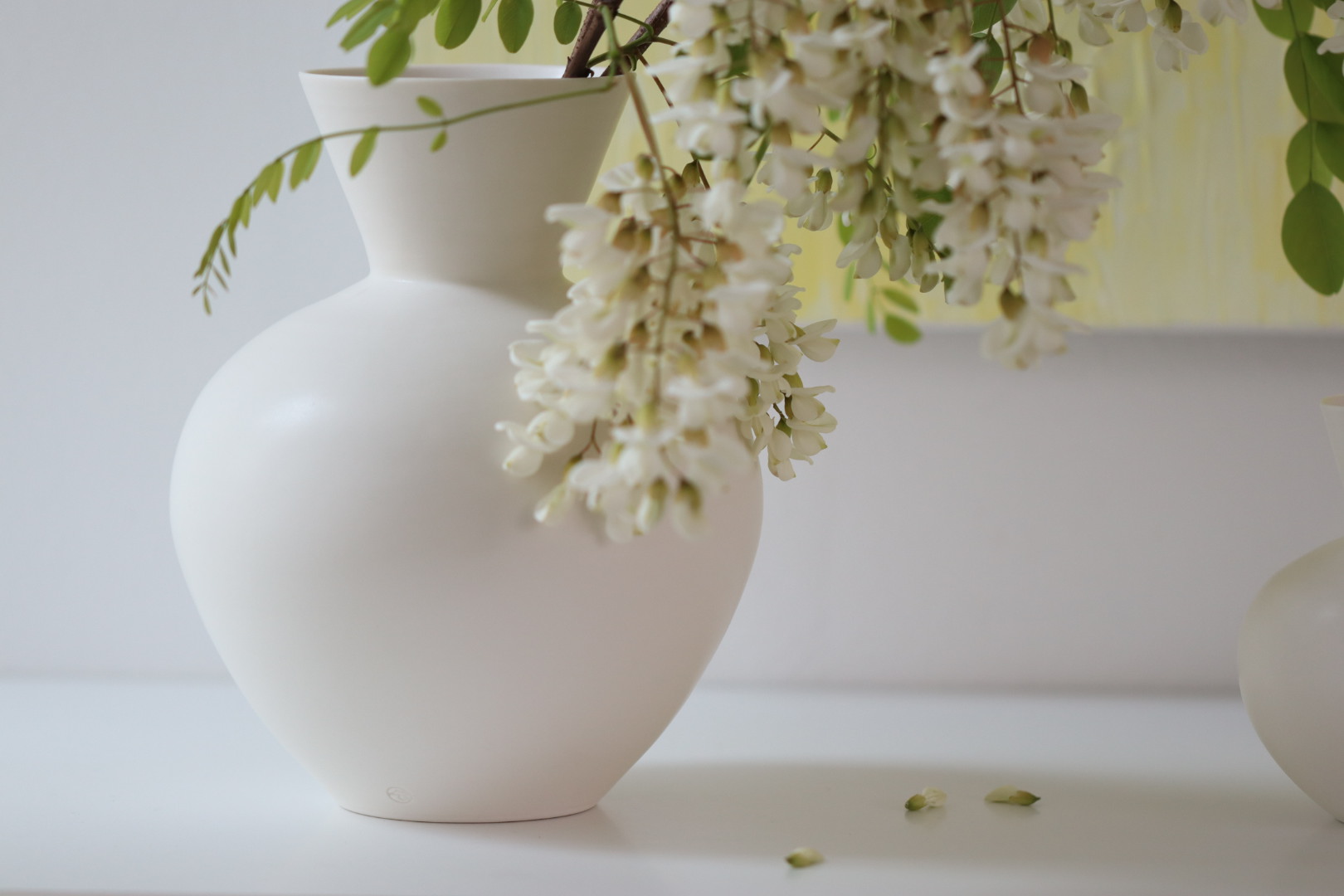 가지치기도 할겸 해서 아카시아 나무를 베어와 사계연의 화기에 담아 감상하는 호강을 누렸어요.