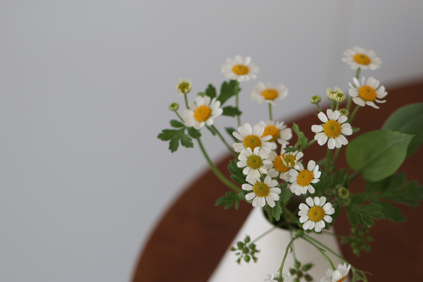 얼마전 이천로커푸드에서 사온 캐모마일을 화기에 담아두었어요. 흔하지만 아기자기 예쁜 꽃송이들.