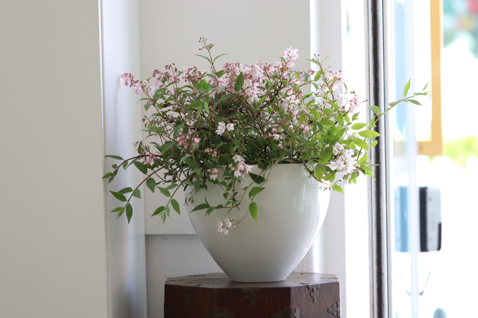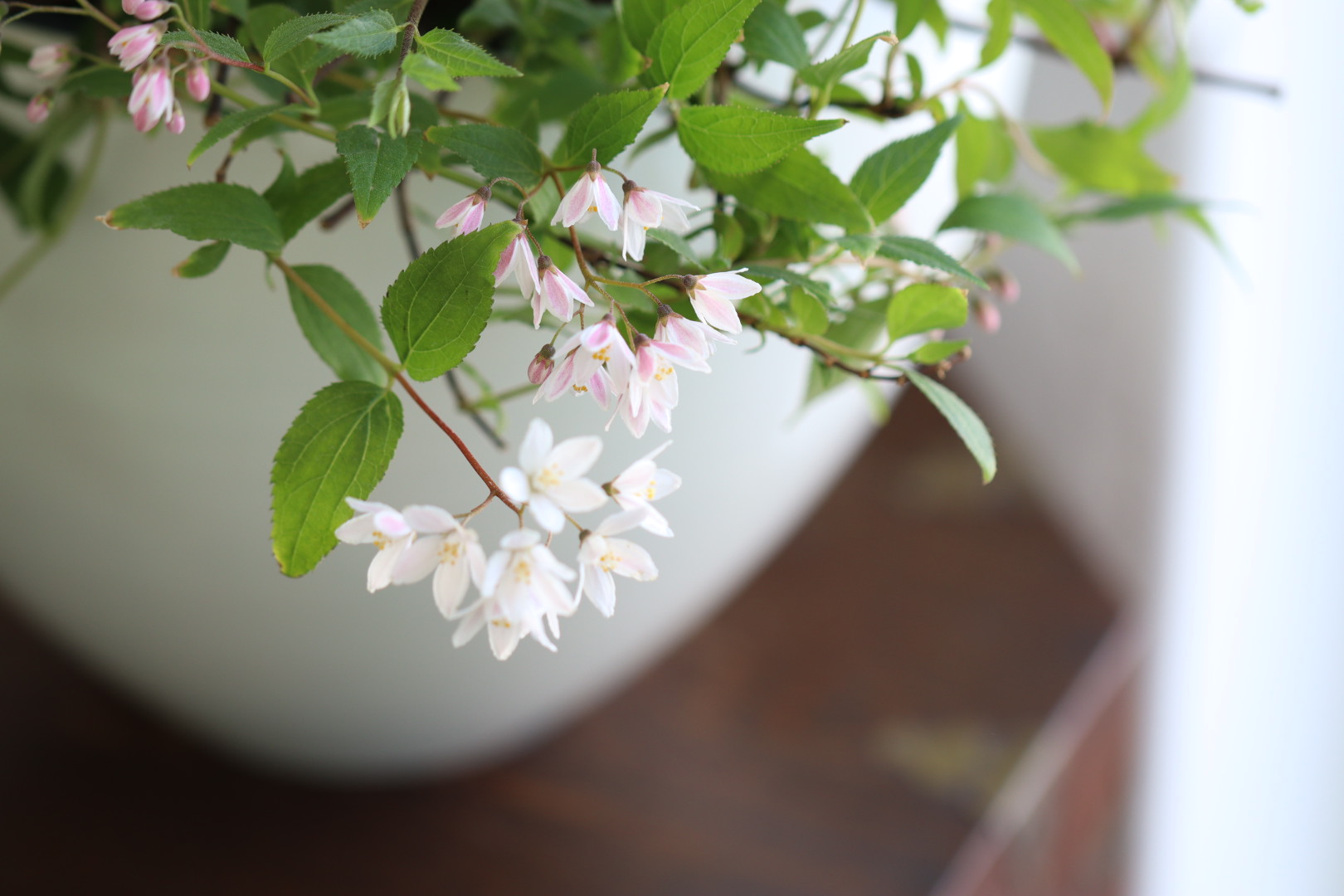 화원에서 우연히 만난 분홍색꽃. 아가자기하게 피어있는 꽃모습에 한 눈에 반했어요. 이름을 물어보니 ‘말발도리’라고 하네요. 얼른 데려와 도자기 오브제에 담아두었어요. 마당에 말발도리를 키우라는 말은 종종 들었지만