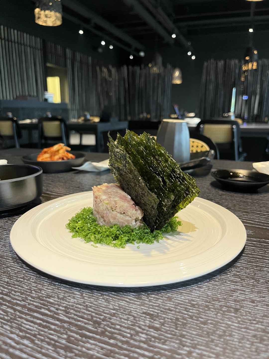 대파와 함께 다진 참치를 조미김과 곁들여 먹는 요리인데요,